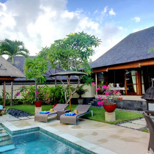 Cette villa dispose d’une chambre et pourra donc accueillir 2 personnes. Elle vous charmera aisément par sa conception simpliste tournée sur l’extérieur. Son design est prévu pour profiter des faveurs du climat dans un style tout à fait balinais. Néanmoins, elle dispose de tous les standards de confort moderne. Le salon, la chambre et la salle de bain en extérieur forment le pavillon. Ce dernier s’ouvre sur le jardin adéquat au repos et à la détente. Une piscine et un gazebo y sont présents.