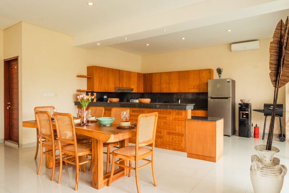 Il y a aussi un salon clos niché à côté de la cuisine entièrement équipée avec des ustensiles de cuisine où vous pourrez créer le plat parfait. Une superbe piscine privée qui dégage une énergie positive, un jardin bien entretenu qui dégage l’énergie la plus intime. Une villa qui vous fait sentir comme à la maison.