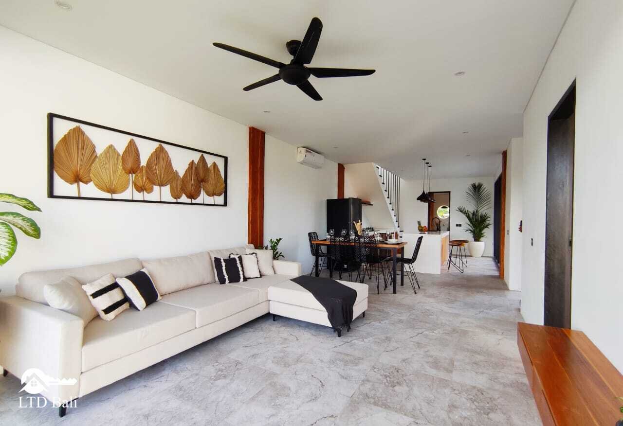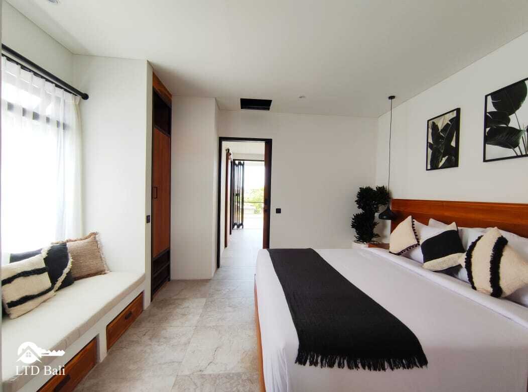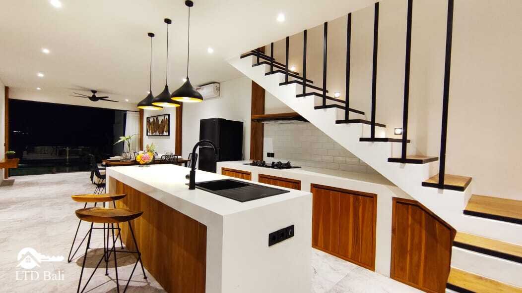 Située dans le quartier de Berawa, au cœur de Canggu, cette villa est une nouvelle construction au concept minimaliste et moderne. Bien que positionnée dans un lieu calme, elle offre une vue imprenable sur les rizières et le coucher de soleil depuis les toits du troisième étage.