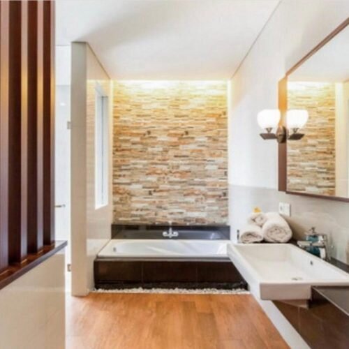 This villa is three bedroom with closed living room. The bedroom with ensuite bathroom and also completed with bathtube. Villa Malika has two kitchen that will make you comfortable to cooking. Fully furnished villa with carport. Clean and wide swimming pool with small garden villa.
