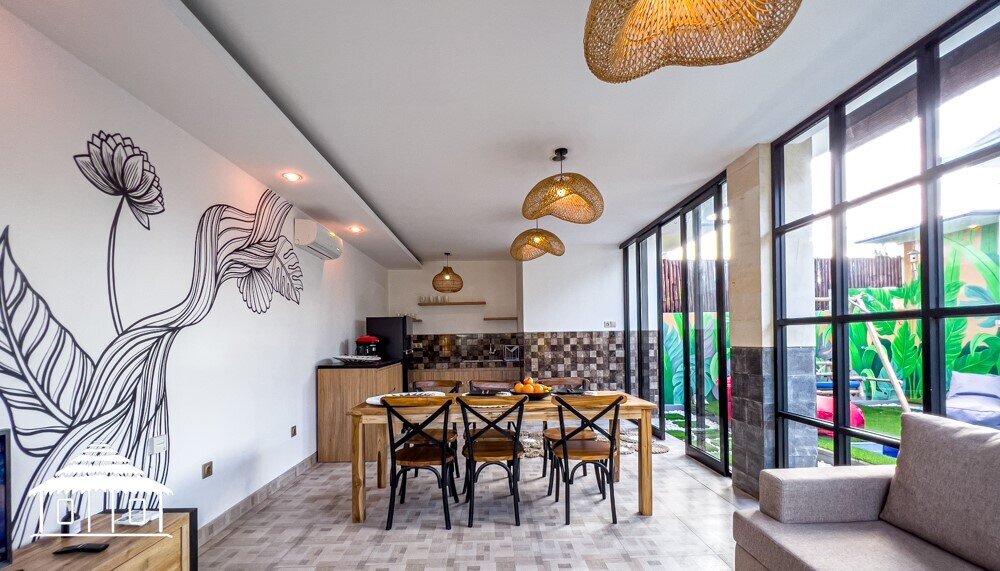 Vous assurant un havre de paix pendant votre aventure à Bali, cette villa comprend 2 chambres, avec salle de bains adjacentes, un salon fermé, une cuisine et une salle à manger fermées, ainsi que des toilettes pour les invités et une salle de rangement pour vous garantir votre intimité.