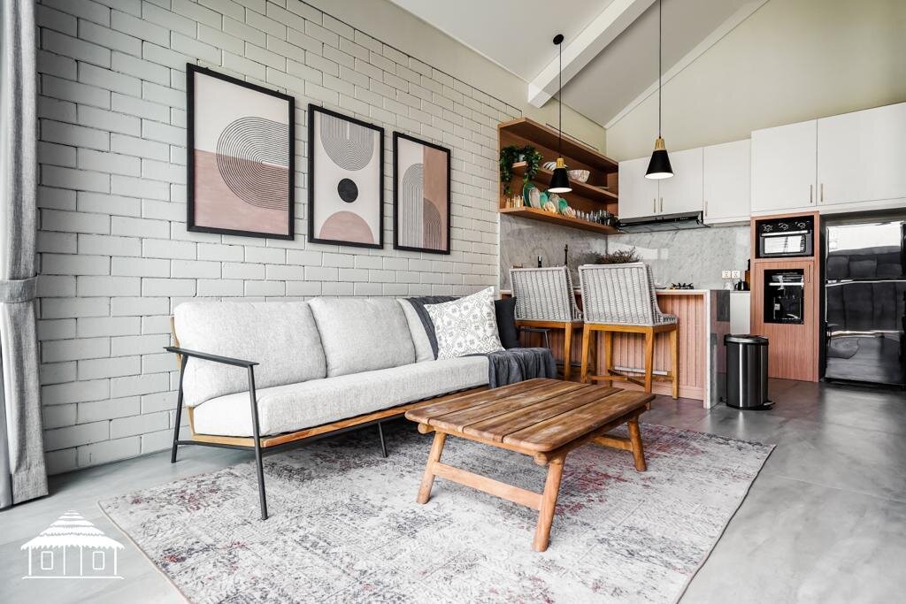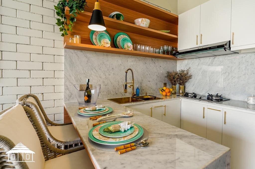 Cette villa attentive à l’ambiance comprend également une adorable cuisine, une salle à manger attenante et un espace de vie à proximité dans la même pièce. Le mobilier pratique favorise une vie confortable et fonctionnelle.
