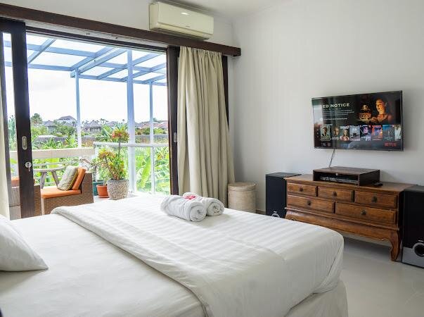 Cette location de villa à Bali est meublée dans un style moderne et équipée de la climatisation dans chaque pièce, de la télévision par câble et du Wi-Fi, le tout géré par notre service de gestion de villa à Bali.