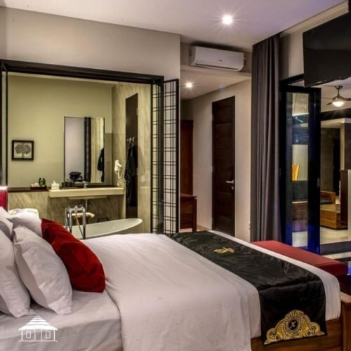 Quite the temporary of its name, Villa Pink is a masculine chamber located in Brawa, an area of which known as the nightlife of Bali. With modern furniture combined with industrial design, makes this house exceptionally high end. This villa is completed with 4 sleek bedroom blending oriental decoration with contemporary visual, with bathroom as lavish as the whole house, and exceptional bathtub, romantic yet bold that connects instantly to the bedroom.