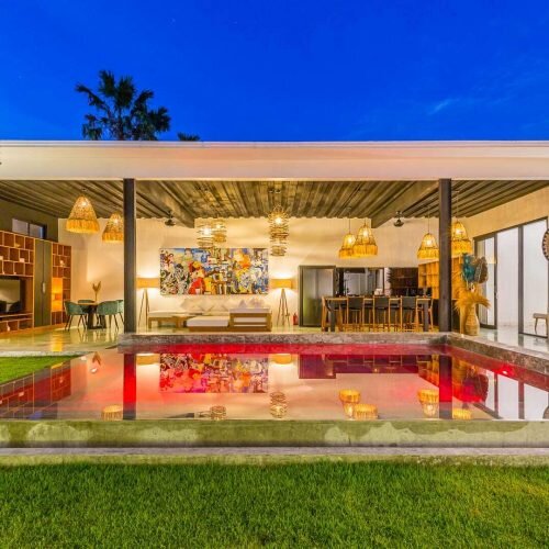 Villa Marliot combines industrial design and art deco, creating a very unique hideout. There will be nothing that can stood against the romantic sunset in Villa Marliot. Positioned in a very strategic area of Canggu, Villa Marliot is close to all legendary places in Canggu. Pepito Market is nearby, making shopping pretty easy and fun. Brawa and Batu Bolong Beaches are within reached by 10 minutes of drive with scooter. Don’t forget to mingle at the notable Finns Beach Club.