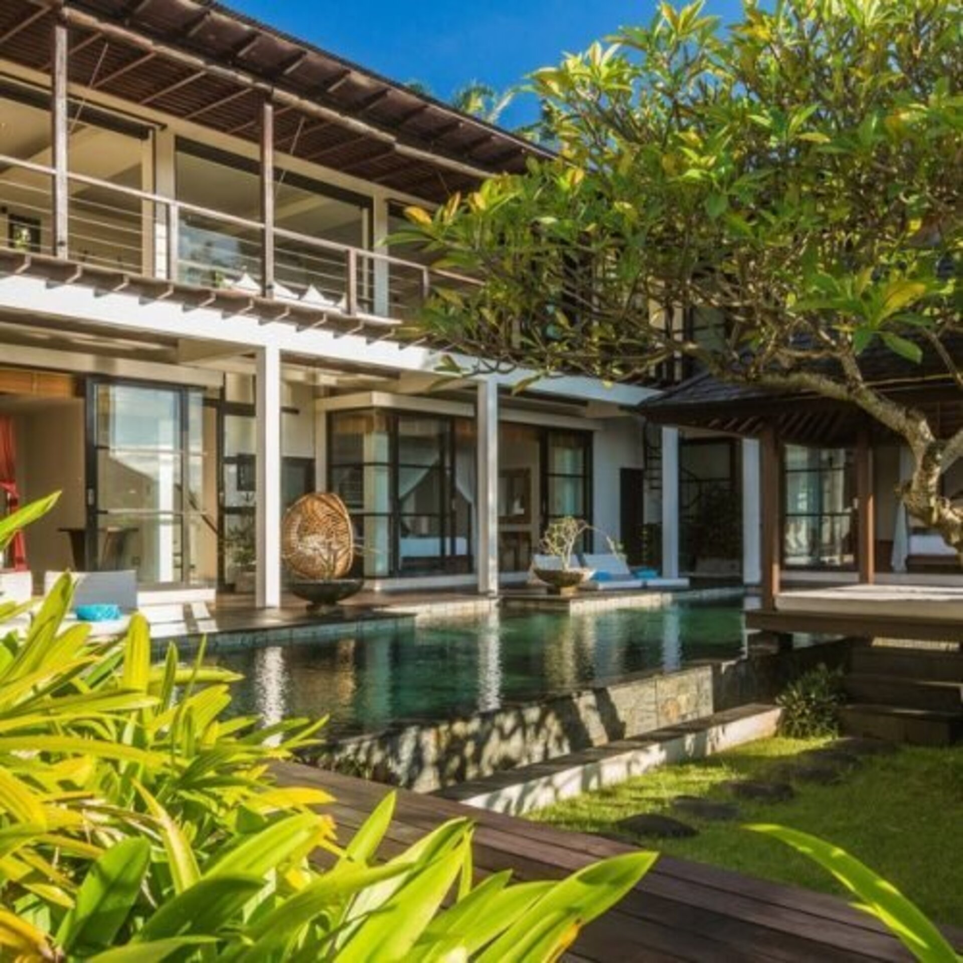 Villa Hills is a high end designed villa and decorated 4 bedrooms villa with marvelous ocean views and only 7-minutes walk to the famous white sand beach of Jimbaran. Located at exclusive hillside complex, one of the most premier addresses in Bali, the architecturally designed 570 sqm private villa is sited on 650 sqm of land overlooking Jimbaran Bay. Villa Hills achieves a balance of luxury, comfort and style. The villa Bali is designed around a large Indian slate swimming pool and hardwood timber bale framing sweeping views of the bay. The smart building design is configured to capture the spectacular views, provide complete privacy and maximize the cooling effect of cross ventilation with the tropical gardens and ocean breezes.