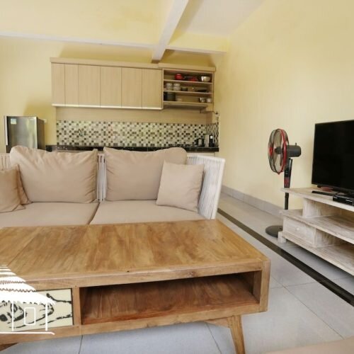 Equipped with 2 stylish bedrooms, a bathroom with asian influence that is attached with large bathroom, a small dining area with an equipped kitchen, a living area with high values furniture such as set of cream comfortable sofa with TV and many facilities. A complete serene villa with many things to accompany you during your stay. And if you step outside to the outdoor area, you will be welcomed with lush private pool that reflects the glints from the sun. As well as wooden deck and sunbeds to suntan.