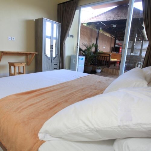 With 2 bedrooms and 2 bathrooms, this villa requires a perfect luck to get. Added with artistic decoration, this villa breaks all the boring minimalistic interior design type of rules. With an open living area, and an open kitchen and dining area that overlooks the crystalline pool, this villa can hold up a guest up to 4 person.