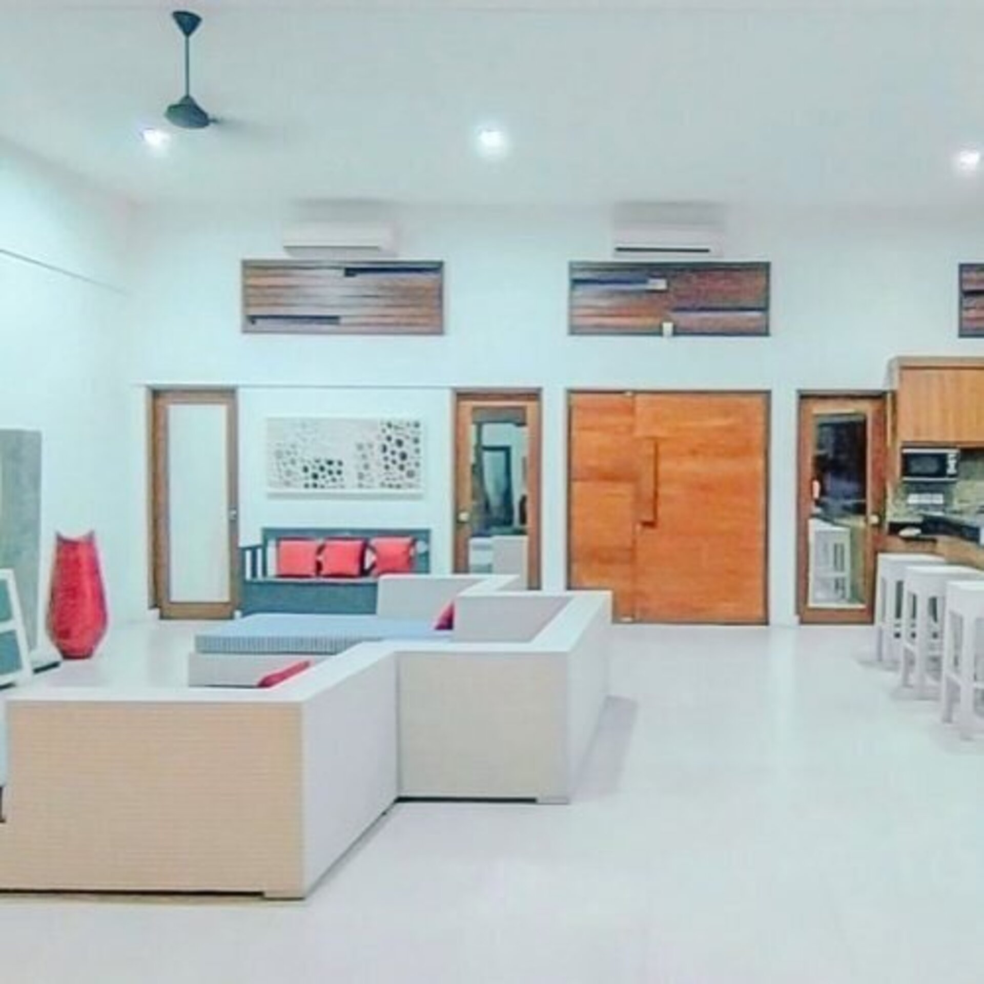 Villa Guchi is three bedroom villa in Umalas area. Three bedroom villa with en suite bathroom. Large garden with private pool villa with forest view. Enclosed living area with AC. Garage available for car and motocycle. Fully equipped kitchen with modern fixtures. Villa area very quite and comfortable.