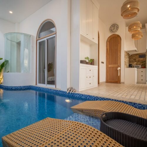 Featuring a private indoor swimming pool, this friendly new Bali villa rental in Brawa offers three large bedrooms, sleeping up to 6 people. Each room has its own air-conditioning and bathroom. Perfect for spending quality time with friends or family. In fact, the location villa Bali is very well. Thanks to bars, beaches like the Finns Club and all kinds of restaurants within easy reach. To make the most of this wonderful villa Bali, you also have free parking on site and fully equipped kitchen. Last but not least, there is a rooftop where you can practice yoga. Just 5 minutes from Canggu’s most popular beaches, the accommodation is conveniently located in a quiet neighborhood.