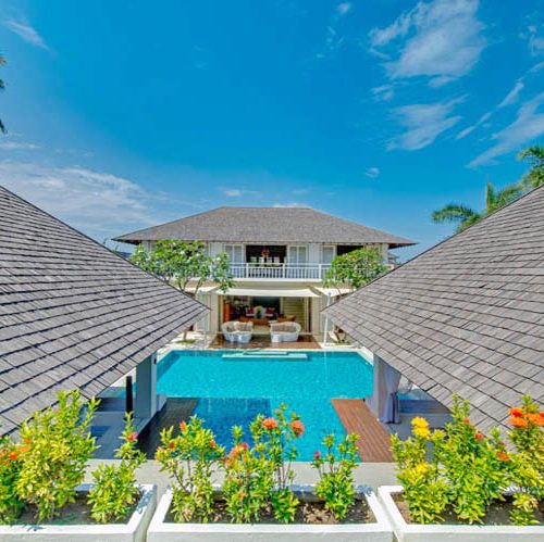 La villa est agencée de façon symétrique autour de la superbe piscine qui s’intègre ainsi à merveille au sein des différents pavillons. Quatre grandes chambres équipées de salles de bain attenantes disposent de tout le confort moderne qui satisfera les plus pointilleux. Le parquet est omniprésent autour de la piscine et, en plus de s’avérer très agréable pour des moments de détente au sein de la propriété, il offre un contraste charmant entre les façades blanches. Parmi les 3 principales pièces à vivre, les invités pourront profiter de la douceur des journées balinaises dans le grand salon salle à manger entièrement ouvert sur l’extérieur. Vous ne vous lasserez pas des grands sofas du lounge, du second salon et de la salle multimédia qui vous octroieront un bien-être plus qu’appréciable en famille. Partout dans la villa, la luminosité et l’espace participent à rendre le séjour confortable et inoubliable.