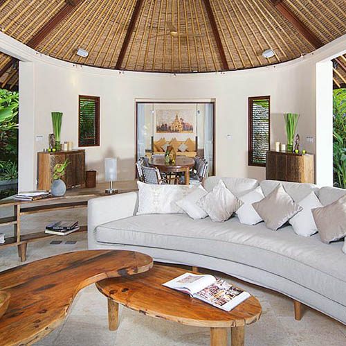 Les convives auront la chance de profiter d’une salle à manger ouverte sur le jardin et la piscine, avec un toit de chaume à couper le souffle. Cet espace salle à manger est une invitation au bonheur, d’autant plus que les cuisiniers se feront un plaisir de vous faire déguster une cuisine indonésienne ou internationale au gré de vos envies ; et ce dans un espace romantique propice à la détente. Partout dans la maison, l’aménagement est à mi-chemin entre tradition balinaise et design ultra moderne contemporain du plus bel effet.