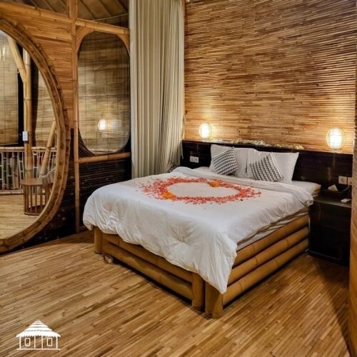 The main attraction of this villa is the 2 spacious bedrooms hugged by bamboo furniture, bathroom with stone decor that showcases the charm of the tropical ambience. The open living area overlooks the pool, and there is a dining area and a kitchen as well as a small working space, ensuring utmost comfort and convenience.